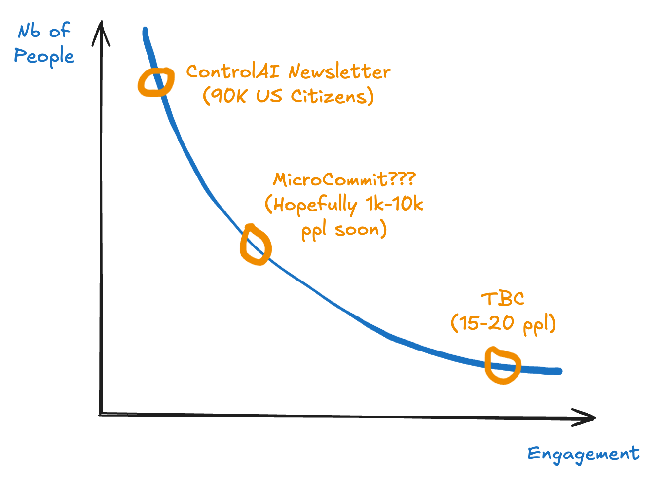 ControlAI has a lower engagement way of interacting, namely through subscribing to its newsletter, and I hope MicroCommit can get at least 1-10% of the newsletter’s subscriber count.